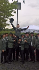 In einem kurzweiligen und unterhaltsamen Schießen unter der Vogelstange sicherte sich schließlich mit dem 109. Schuss der Avantgardist Dr. Benjamin Kaminsiki die Königswürde. An seiner Seite regiert Ann Christin Kuckhoff die Werler Schützen. Die Insignien sicherten sich Tobias Kaufmann (Krone) und Martin Gries (Apfel) von der III.Kompanie, sowie Avantgardist Manuel Siegert (Zepter). Im anschließenden wieder auferlebten Geckschießen holte Fabian Aussel von der II.Kompanie den Geck aus dem Kugelfang.