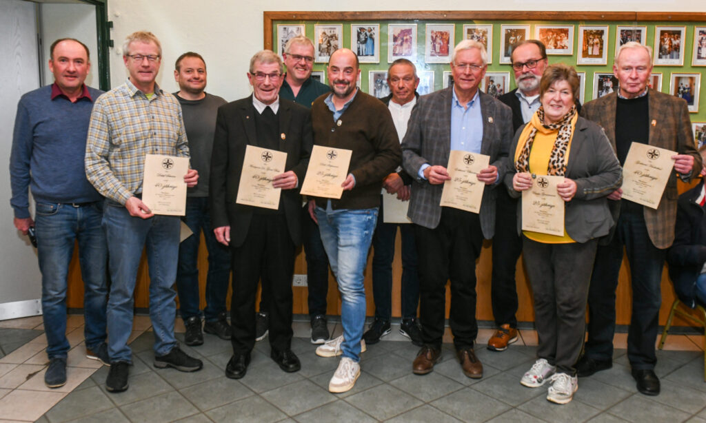 Für ihre langjährige Treue zu Bruderschaft wurden geehrt: Hans Bünger, Karl-Wilhelm Zeppenfeld (1. Kompanie, Josef Döbber (3. Kompanie) (alle 60 Jahre), Heinz Bong, Winfried Ottmann (2. Kompanie), Frank Wick (4. Kompanie), Paul Hennecke (5. Kompanie) (alle 50 Jahre und Ernennung zu Ehrenmitgliedern), Gerhard Hackethal, Werner Meyer (1. Kompanie), Monsignore Dr. Gerd Best, Dominique Peters (2. Kompanie), Clemens Gerbens, Silke Rettkowski, Andreas Rother, Theo Wächter (4. Kompanie), Wilhelm Humpert, Georg Humpert, Franz-Josef Schäfer, Detlef Schröer (4. Kompanie), Günter Korf, Meinolf Krillke, Adolf Lemsky (5. Kompanie) (alle 40 Jahre), Klemens Becker, Lutz-Günter Becke, Ulrich Canisius, Ursula Grossmann, Wolfgang Rüsken, Thomas Schwab, Dirk Siepmann, Eckhard Uhlenberg (3. Kompanie), Angelika Elwert, Benjamin Kaminski, Reinke Nutz, Nicole Rückstieß (4. Kompanie) und Halil Temiz (5. Kompanie) (alle 25 Jahre). toni