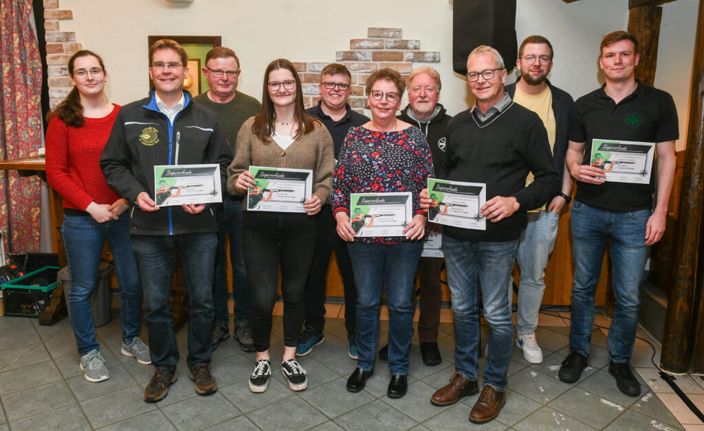 Schießmeisterin Sabrina Wulf nahm bei der Jahreshauptversammlung die Siegehrung der Vereinsmeisterschaft der Werler Schützen im Schießen vor. Die Ergebnisse: Schülerklasse: 1. Klara Müller (140 Ringe), 2. Simon Müller (140), 3. Yannick Zeppenfeld (131). Jugendklasse: 1. Katharina Tribukait (103). Schützenklasse: 1. Lars Schäfer (106), 2. Nils Reher (87), 3. Dominik Junker (77). Altersklasse: 1. Bernd Müller (145), 2. Markus Bechheim (137), 3. Detlef Schröer (134). Seniorenklasse: 1. Christian Liebeskind (138), 2. Theo Schriever (133), 3. Michael Schröer (129). Damenklasse: 1. Hildegard Bettermann (142), 2. Melina Schröer (140), 3. Klara Bechheim (136). Luftpistole: 1. Michael Schröer Michael (117), 2. Christian Liebeskind (112), 3. Katharina Tribukait (79). toni