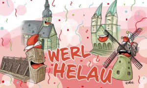 Am Samstag Abend ab 19 Uhr heißt es wieder „Werl Helau“ in der Stadthalle an der Schützenstraße. Die Karnevalisten der Bruderschaft haben zusammen mit begeisterten Närrinen und Narren aus der Wallfahrtstadt und den örtlichen Vereinen ein unterhaltsames und abwechslungsreiches Programm auf die Bühne gestellt. Neben den etablierten Tanzeinlagen der Werler Kangaroos und den „schönsten Mädchen aus Ense“ der LSG Ense Bremen, über Schwarzlichttheater der Powerfrauen des BVB-Fanclubs bis hin zu Tanz- und Gesangseinlagen, und politisches Kabarett aus den Reihen der Schützen, ist für die Zuschauer einiges zu sehen und zu hören. Die musikalische Unterstützung während des Programmes übernimmt der Spielmannszuges der St. Sebastianus Schützenbruderschaft. Im Anschluss an das kurzweilige, Lachmuskel trainierende Programm gibt es natürlich noch die Gelegenheit den Hallenboden zur Partymusik beben zu lassen. Ab 22 Uhr legt DJ Pascal Karnevalshits und aktuelle Musik auf. Karnevalspräsident Lutz Langschmidt und seine Crew freuen sich auf zahlreiche, verkleidete Gäste aus Nah und Fern.