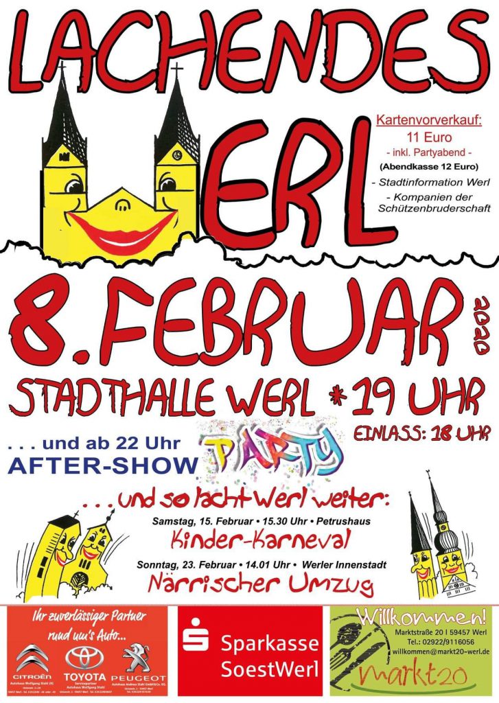 30 Jan. 2020 LACHENDES WERL 8. Februar 2020 von Martin Gries | Veröffentlicht in: Nachrichten | 0 Herzlich Willkommen zum Lachenden Werl 2020! Bereits 0 Mal geteilt. Danke!teilen teilen teilen