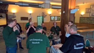 Auch wenn das Festzelt und der Fahnenschmuck noch fehlten, war das Laubholen zum Schützenfest ein erster positiver Vorgeschmack auf das kommende Fest. Das Wetter hatte auch Einsicht, so dass das Tor der Scheune schnell zum Auslagern des Treffens ins Freie einlud. Die IV.Kompanie hatte die Theke und den Grill im Griff. Mit der Unterstützung der Dritten und den Vertretern des Spielmannszuges durften dann kleine musikalische Einlagen nicht fehlen, wobei im Wechsel dann auch der ein oder andere ungeübte Schütze seine Fähigkeiten an den Instrumenten beweisen konnte. Die Schützen freuen sich gemeinsam auf das Schützenfest am kommenden Wochenende. Der nächste Arbeitseinsatz ist für Mittwoch Abend ab 18 Uhr geplant, bei dem das Festzelt aufgebaut und bestückt wird.