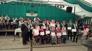 Das Schützenfrühstück zum Freibierfrühschoppen war auch in diesem Jahr ein voller Erfolg. Neben den zahlreichen Schützen waren auch viele Gäste im Festzelt anzutreffen, die das Frühstück vom Werlinger genossen haben. Bei der Verleihung der Schießpokale und den Ehrungen für verdiente Schützen konnten sich zudem viele Schützenschwestern und Schützenbrüder für ihre Leistungen auszeichnen lassen. Heute Nachmittag finden sich die Schützen zum großen Festumzug auf dem Marktplatz ein, bevor am Abend dann die Live-Band querbeat das Zepter im Festzelt übernimmt. An der Abendkasse werden heute 5€ Eintritt erhoben. Mitglieder und Teilnehmer des Frühschoppens mit gültigem Eintrittsband sind hiervon nicht betroffen. Wir freuen uns auf viele Gäste zum Festzug und zum Tanzabend.