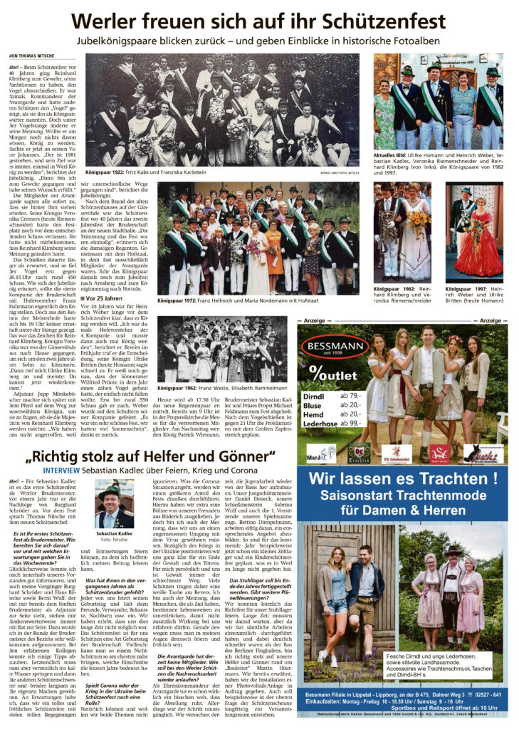 19 Aug. 2022 Soester Anzeiger vom 19. August 2022 von Thomas Nitsche | Veröffentlicht in: Presseartikel | 0 Vorankündigung Schützenfest Bereits 0 Mal geteilt. Danke!teilen teilen teilen